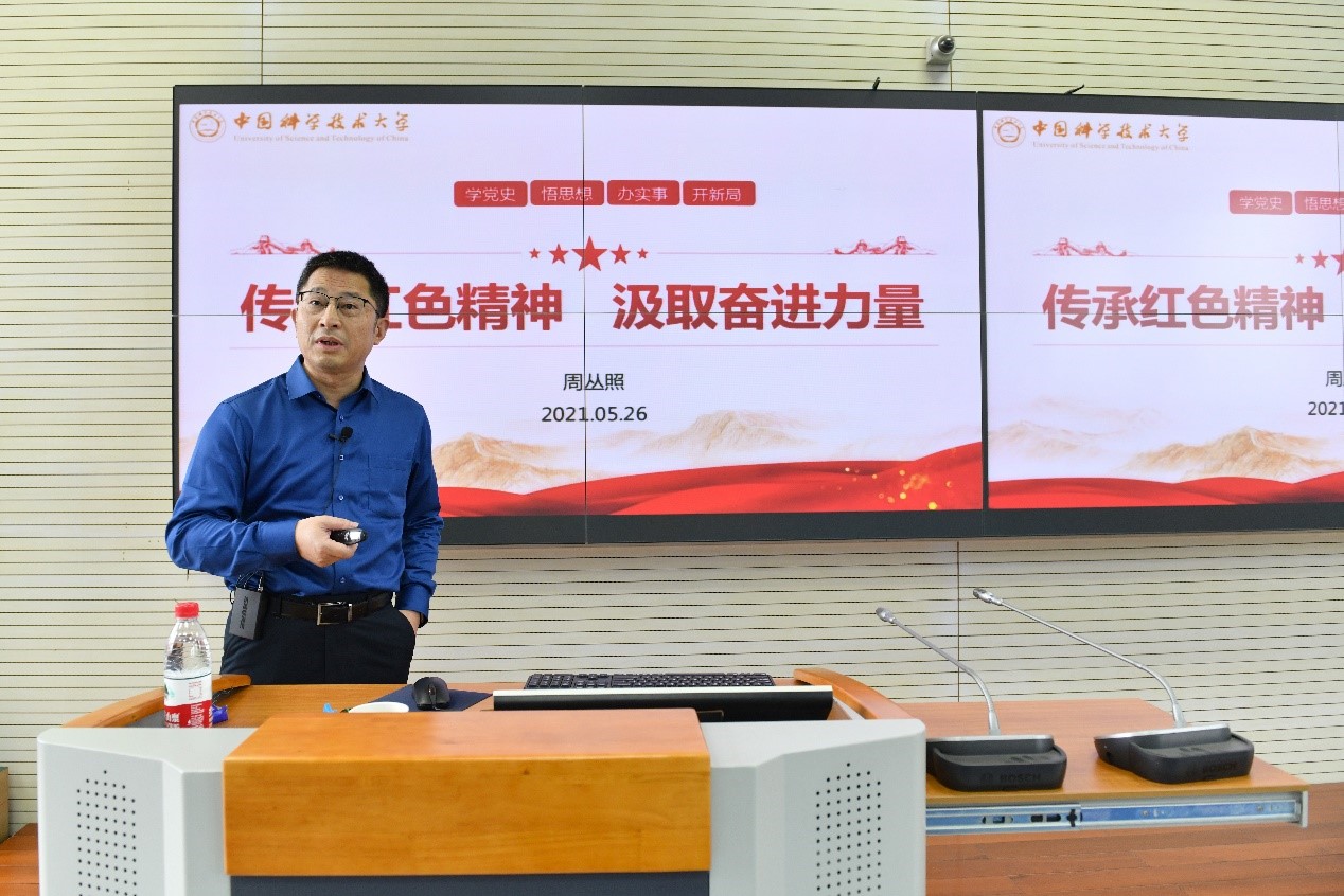 5月26日下午,校长助理、教务长周丛照以“传承红色精神 汲取奋进力量”为题,在教二楼2721教室为教务处、招生就业处党员干部及马克思主义学院全体师生作党史学习教育专题党课报告。校党委书记舒歌群以普通党员身份参加了学习。报告会由教务处党支部书记曾长淦主持。
