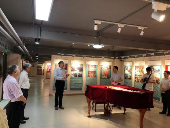 人文学院党委书记褚建勋代表学院党委对所有参与策展设计的师生表示感谢,特别感谢陈履生先生作为人文学院艺术与科学研究中心主任为《美术经典中的百年党史》所付出的大量心血。他表示,党史学习需要结合新形势新方法,通过画展的形式,让广大师生对学习内容入脑入心。希望本次展览为老师同学们带来一场精神洗礼,使大家自觉肩负起历史重任,为双一流大学建设贡献自己的力量。