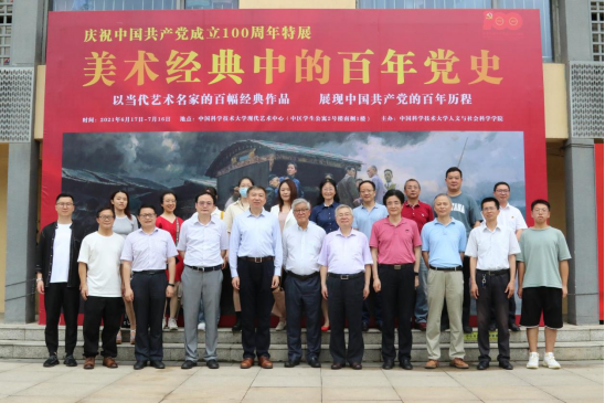 本次特展《美术经典中的百年党史》正式拉开了帷幕,它将在科大现代艺术中心(中校区学生公寓2号楼一楼展厅)进行为期一个月的布展,时间从6月17日持续至7月16日,相信会让更多的科大师生感受到党史学习教育的心灵洗礼和艺术魅力。