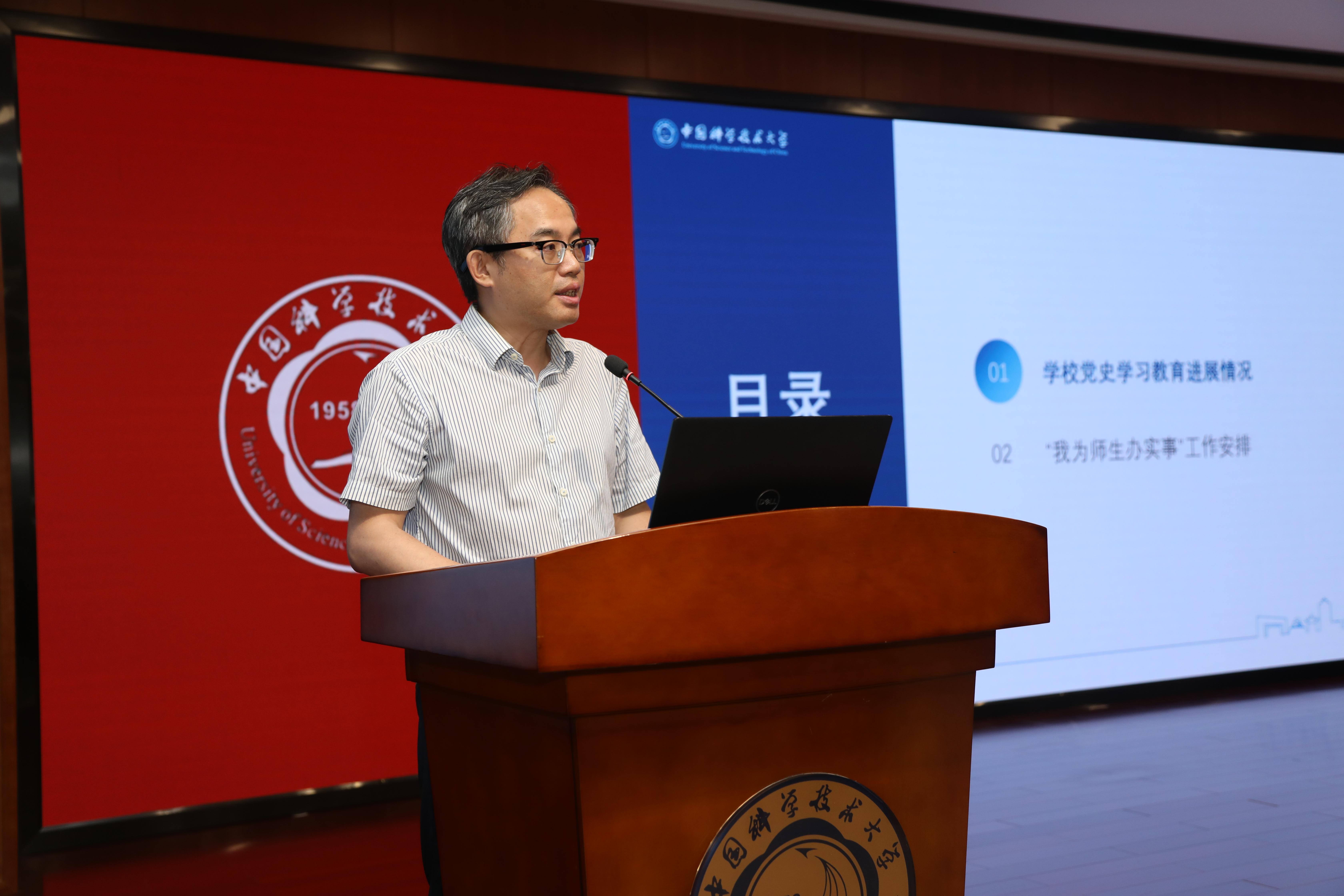 舒歌群就推进党史学习教育工作提出两点要求,一是持续开展好党史学习教育,精心筹备组织好庆祝建党一百周年系列活动,各院级党组织要抓紧推进党史学习教育专题党课和专题组织生活会。二是统筹做好“我为师生办实事”实践活动,围绕服务“潜心立德树人、执着攻关创新”两大核心任务,充分发挥基层党组织战斗堡垒作用、领导干部模范带头作用和党员先锋模范作用,在深入调研上下功夫,在扎实推进上下功夫,在部门联动上下功夫,切实解决师生“急难愁盼”的实际问题。