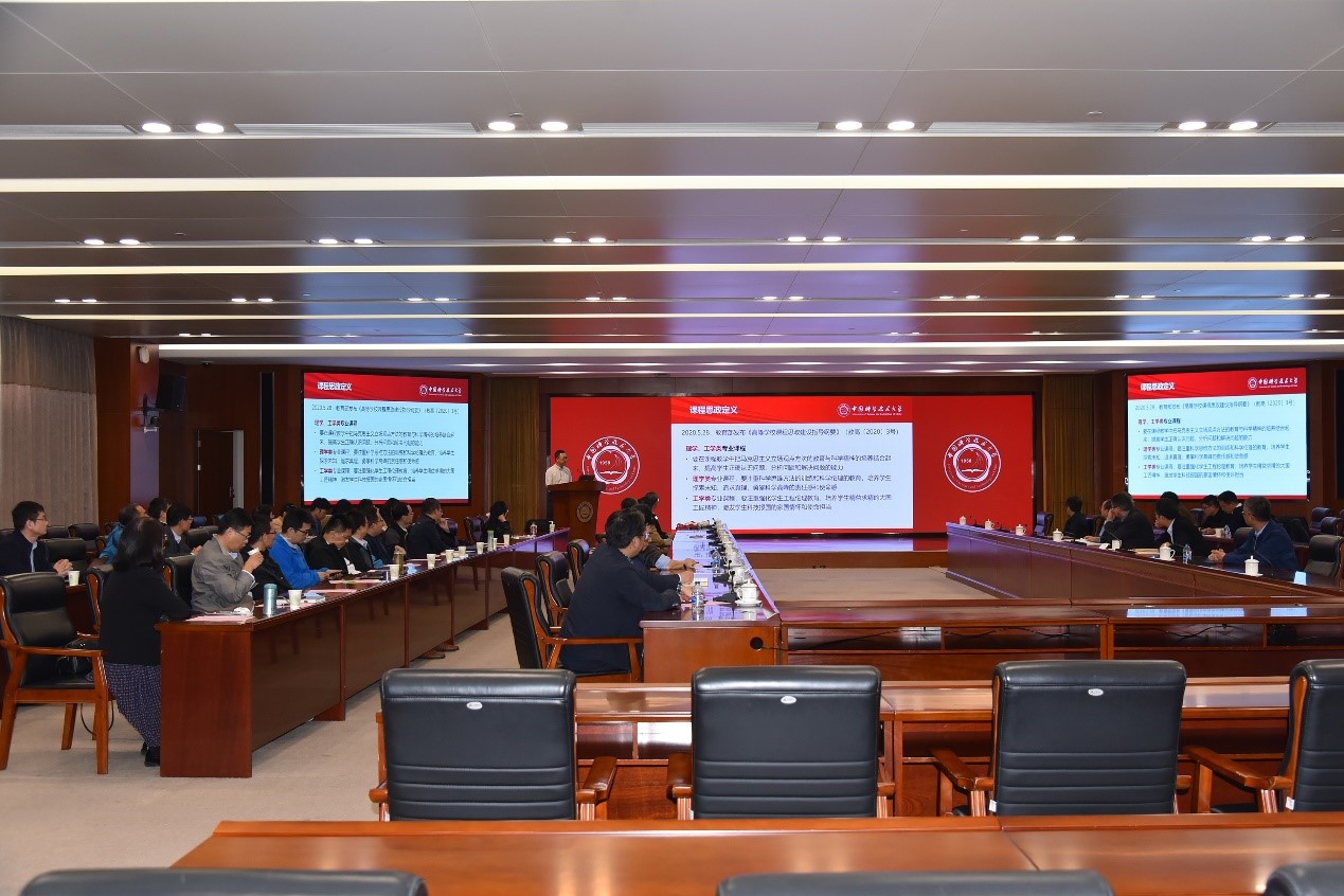 教务处副处长韦巍巍介绍了本科课程思政进展情况,研究生院培养办公室主任万洪英介绍了研究生课程思政进展情况。我校入选教育部课程思政示范课的任课教师代表孙广中、叶回春、苟清龙分别分享了课程思政的教学实践和建设经验。马克思主义学院教师赵琼介绍了马克思主义学院参与配合学校课程思政建设的举措。与会人员围绕如何正确认识课程思政、课程思政的开展形式、支部对课程思政建设的作用等方面展开了交流与讨论。