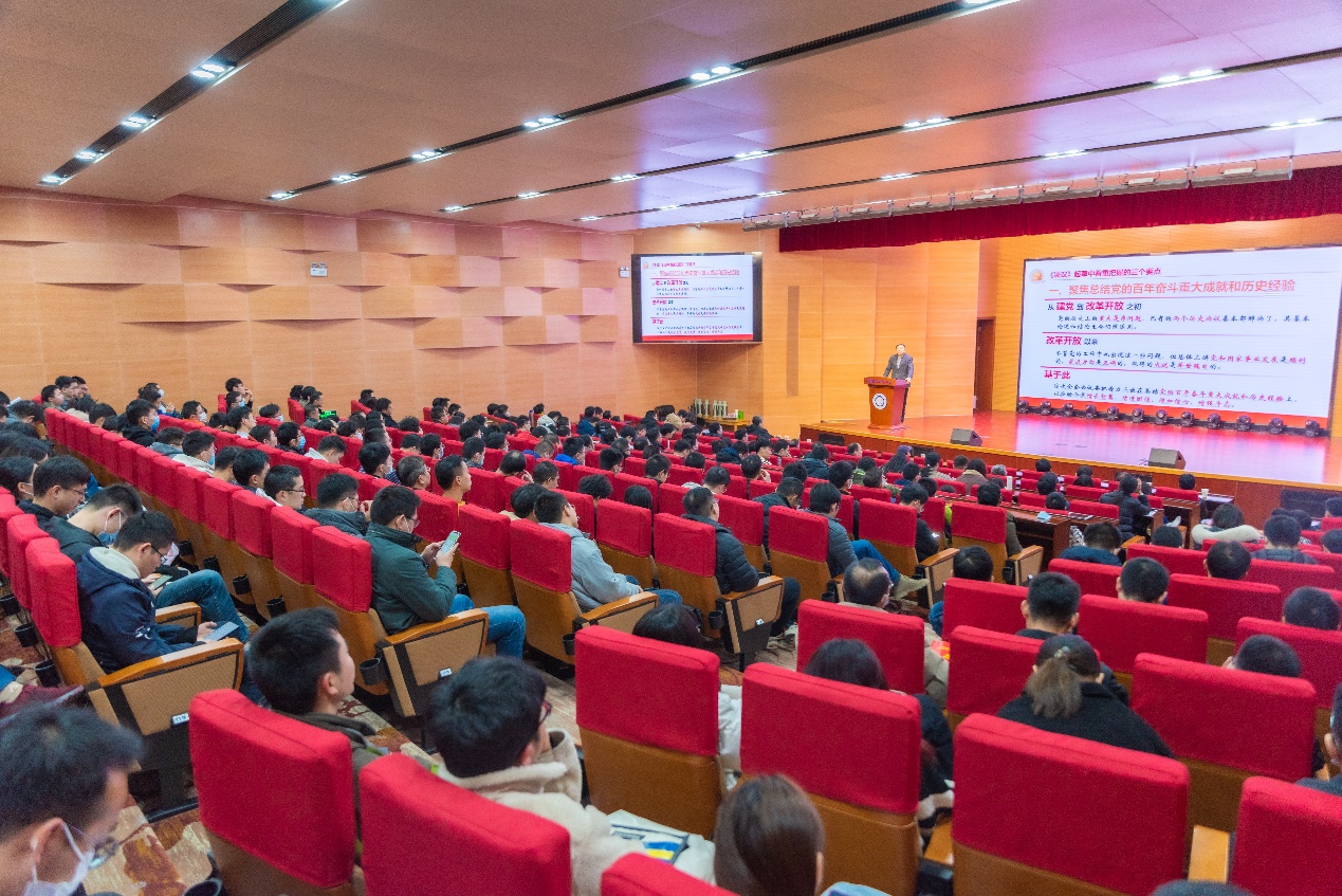 舒歌群书记作学校学习贯彻党的十九届六中全会精神宣讲团首场宣讲报告