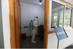 14:20,物业工作人员进行封控区终末消毒。