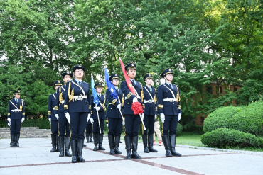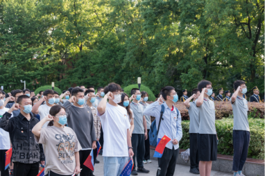 仪式最后,全体人员在升旗台前合影留念。升旗仪式旨在通过沉浸式的仪式教育凝聚青春力量,引导广大青年传承“科教报国、追求卓越”的红色基因,激励广大青年自觉把个人理想追求融入党和国家事业中,以实际行动迎接党的二十大胜利召开。