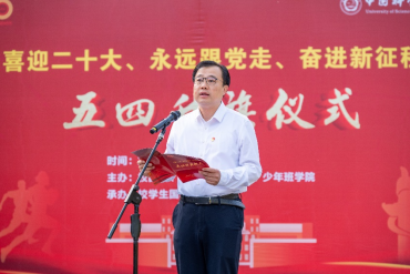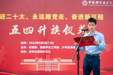 5月4日清晨,我校举行“喜迎二十大、永远跟党走、奋进新征程”五四升旗仪式。校党委副书记傅尧、物理学院教授林毅恒、党委宣传部常务副部长朱霁平、党委学生工作部副部长金顺玉、少年班学院党总支副书记兼团委书记徐晶芝、校团委副书记赵林,少年班学院团员代表、2021级新疆预科班学生和自发前来观礼的广大师生校友参加仪式。仪式由校团委书记杨晓果主持。
