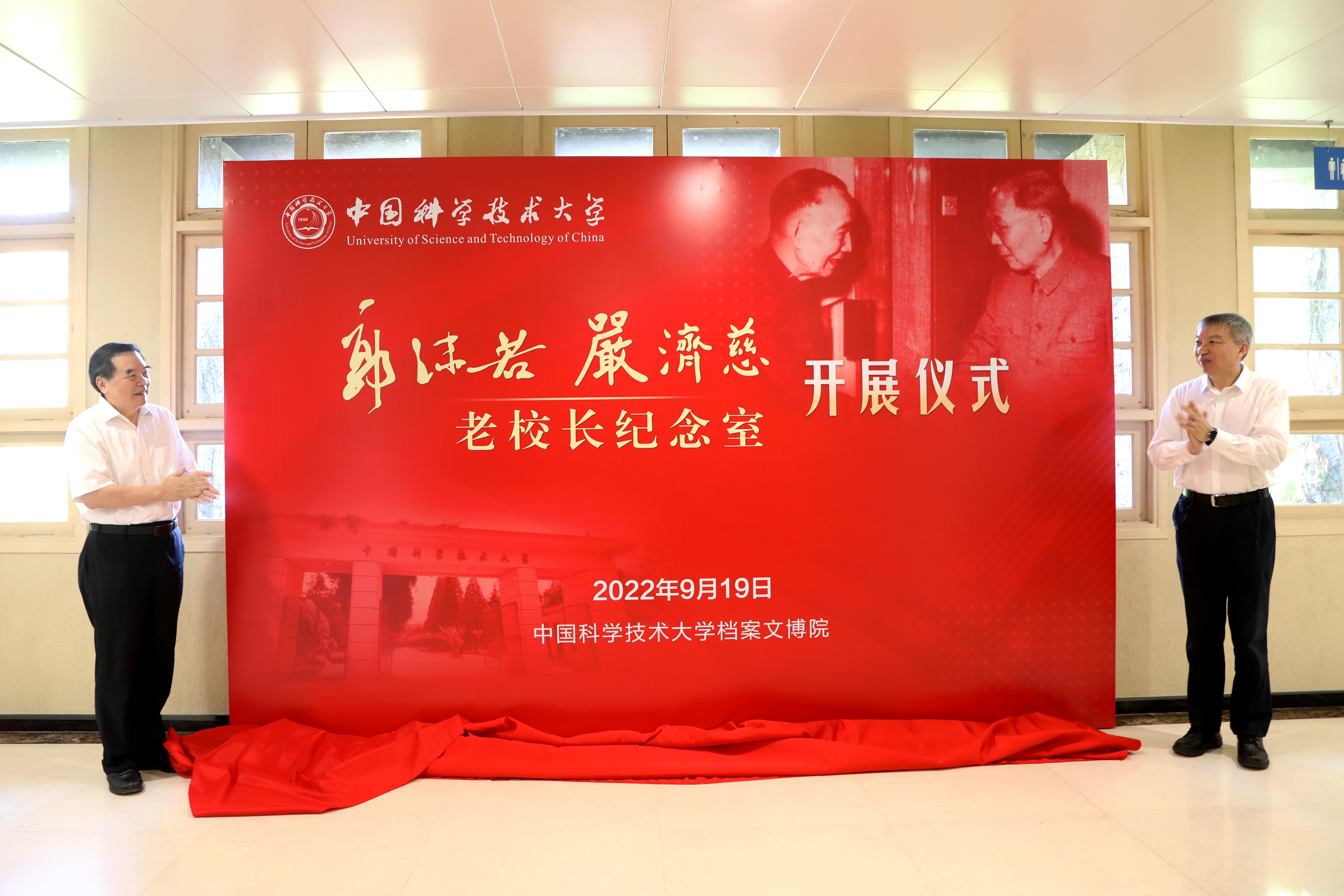 9月19日上午,在中国科大建校64周年之际,学校在校史馆三楼举办“郭沫若、严济慈老校长纪念室”开展仪式。校党委书记舒歌群、校长包信和院士共同为展览揭幕。全体在校校领导,部分机关部门、院系负责人和师生代表参加了仪式。党委常委、副校长杜江峰主持仪式。