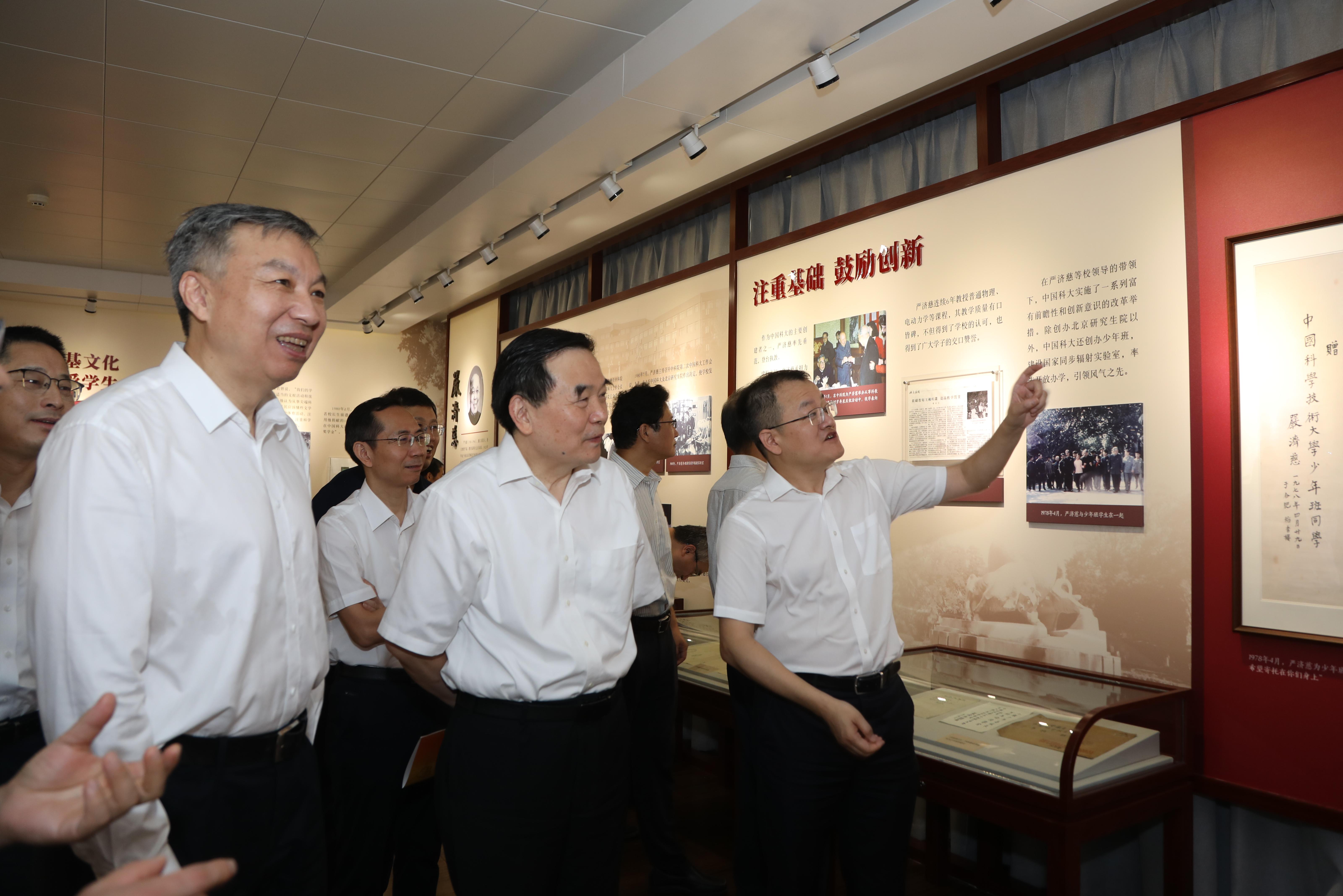 开展仪式后,全体与会人员参观了郭沫若、严济慈老校长纪念室。纪念室通过大量图片、资料和实物,记录了两位老校长在中国科大的主要办学实践,重现他们关心学校发展、关爱学生的历史瞬间,也初步总结了他们的办学思想,体现了老一辈科学家胸怀祖国、服务人民、努力奋斗、开拓创新的高贵品质。