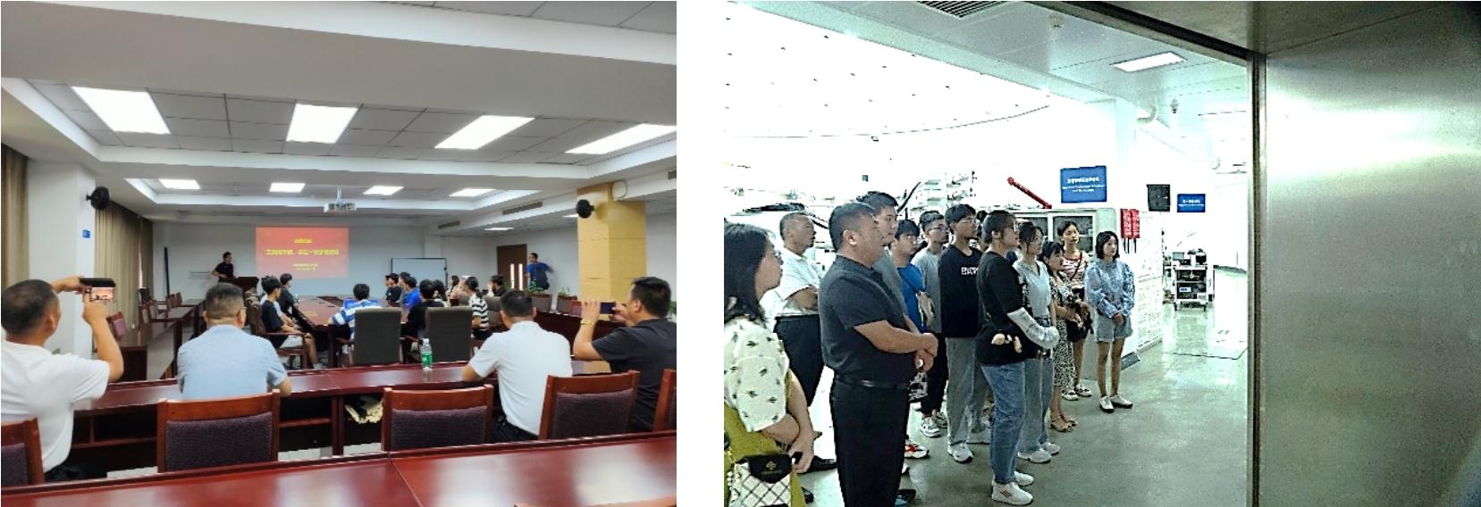 国家同步辐射实验室2020级研究生班党支部书记谢治、国家同步辐射实验室师生代表会同王家坝干部、学生于3号楼210会议室进行了座谈。首先,谢治做了同步辐射的科普报告,重点介绍了同步辐射的优点和同步辐射在物理、化学、材料、能源环境、考古等多科学领域的应用。之后,他带领大家实地参观了同步辐射环大厅,加深了来访者对同步辐射装置的直观感受。马奔也介绍了王家坝闸的基本情况,并就“王家坝精神”“淮河精神”做了分享。