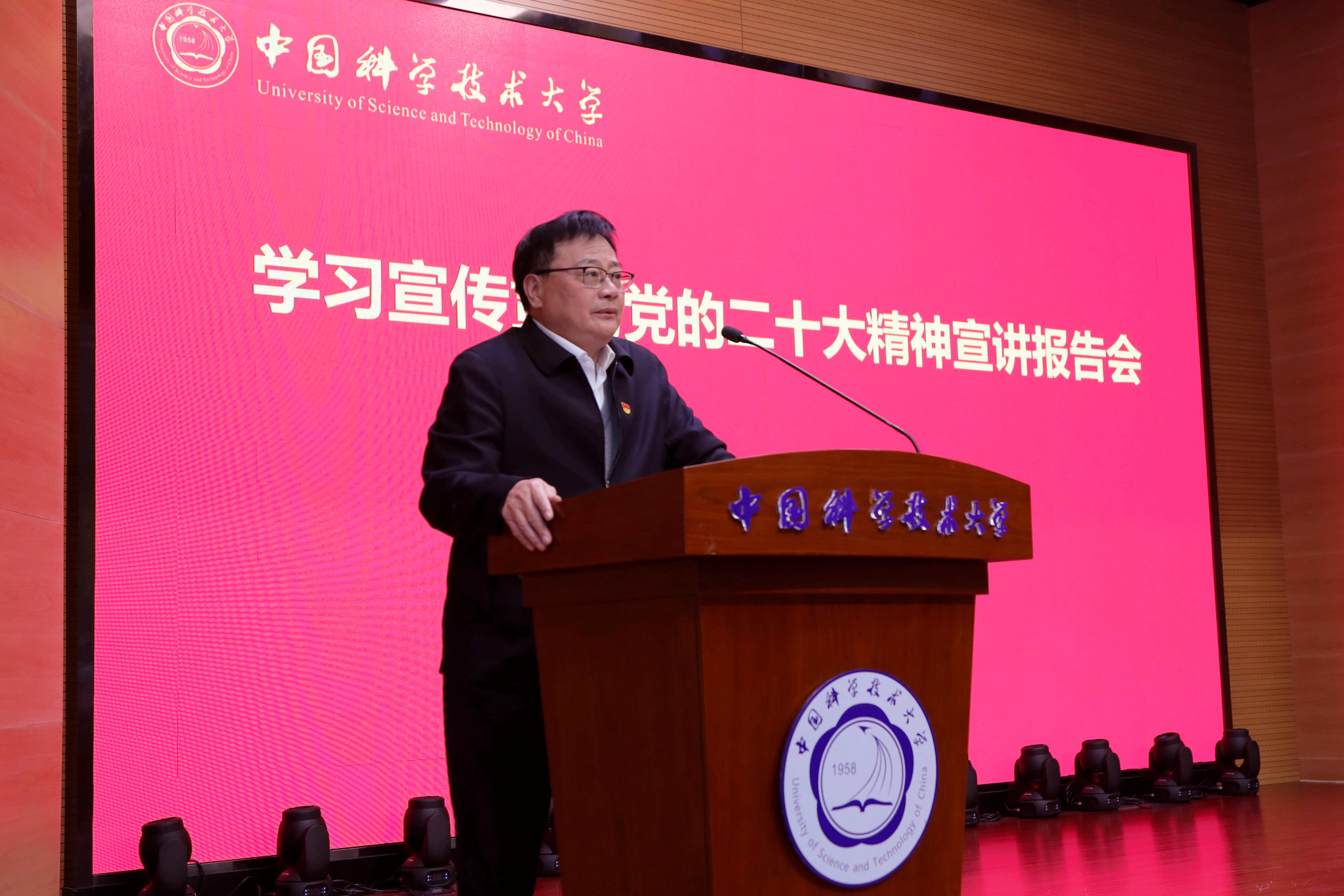凝心聚力谋发展,踔厉奋发勇前行。11月18日下午,中国科学技术大学召开学习贯彻党的二十大精神宣讲团首场宣讲报告会。党的二十大代表、校党委书记、学习贯彻党的二十大精神宣讲团团长舒歌群作专题报告,深入解读党的二十大精神。报告会由马克思主义学院执行院长刘立教授主持。