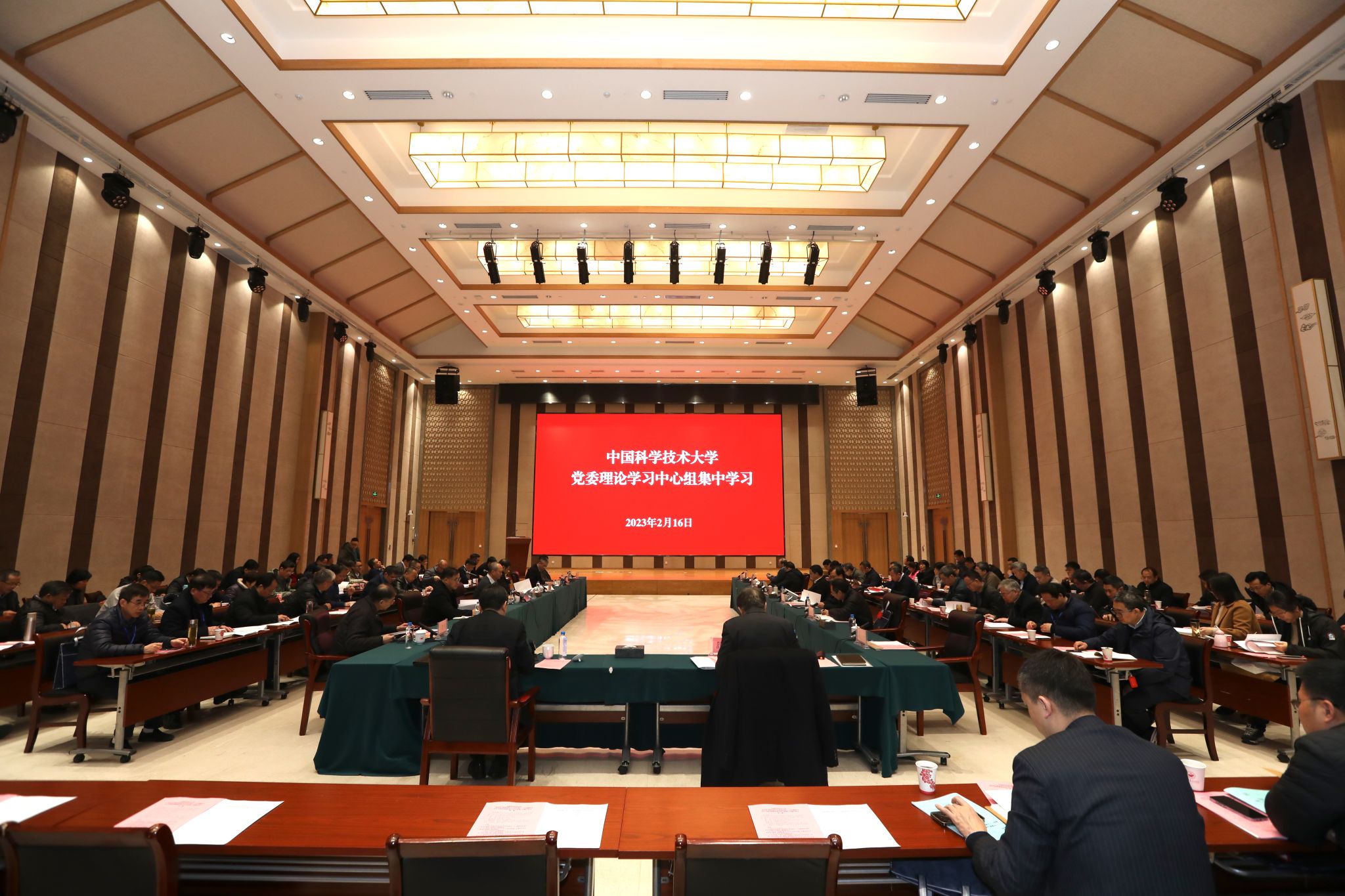 2月16日上午,校党委理论学习中心组在金寨干部学院召开集中学习会,学习习近平总书记在学习贯彻党的二十大精神研讨班开班式上和中共中央政治局第二次集体学习时重要讲话精神,全面学习、全面把握、全面落实党的二十大精神。校党委书记舒歌群主持会议。校长包信和等在校校领导,校党委委员、纪委委员,学院、重点科研机构、附属医院、直属单位党政主要负责人,机关各部门主要负责人,在职院士、特邀代表参加会议。