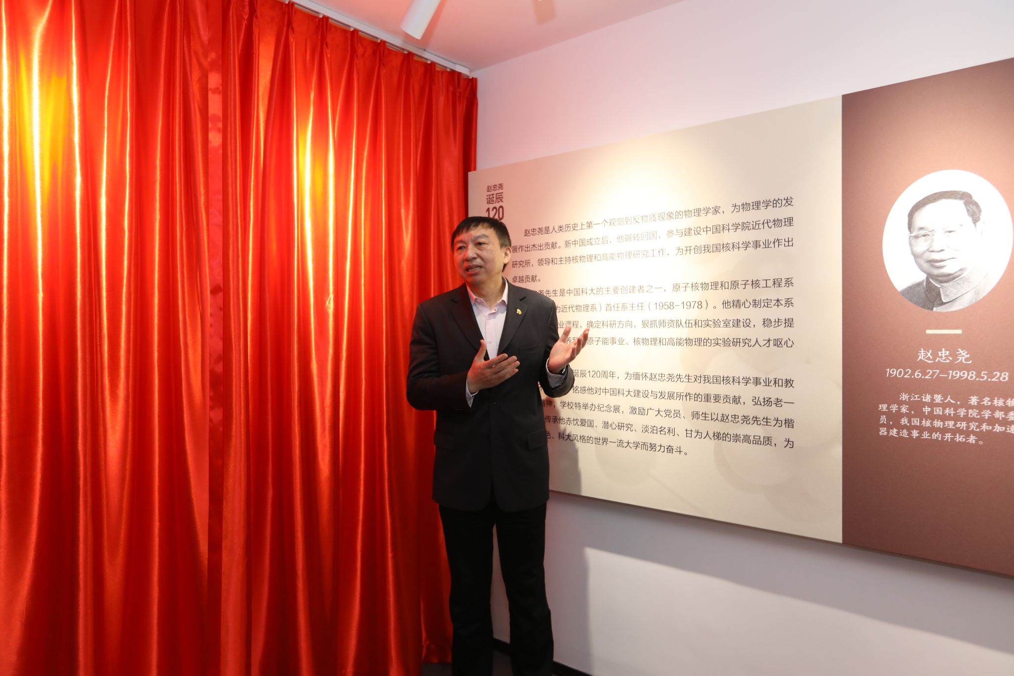 12月12日上午,学校在东区师生活动中心六楼博物馆举行“格物穷理德厚流光——赵忠尧先生诞辰120周年纪念展”揭幕仪式。校党委书记舒歌群、校长包信和共同为展览揭幕。党委常委、副校长杜江峰主持仪式。学校部分师生代表参加仪式。