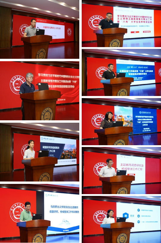 本科生院、马克思主义学院、学生工作部(处)、研究生院、招生就业处、教务处、团委等单位负责人依次汇报主题教育调查研究、检视整改工作相关情况。校领导对各单位汇报内容进行了点评,并就下一阶段主题教育整改整治和巡视整改工作提出具体指导意见。