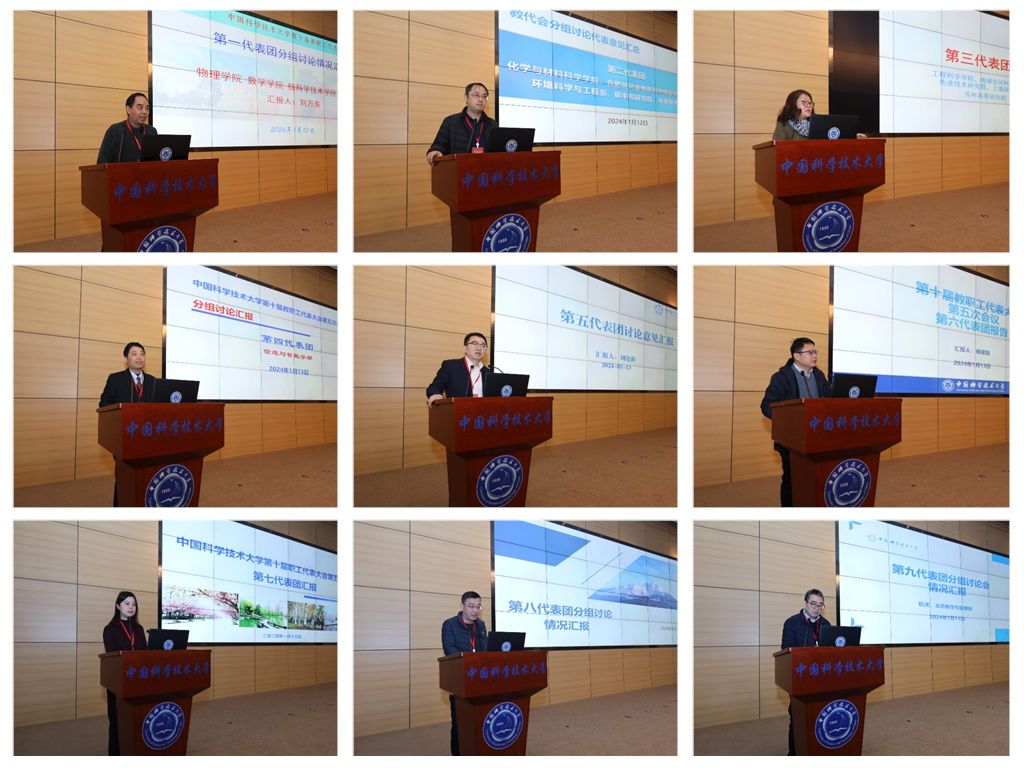 大会首先听取了各代表团分组讨论情况汇报。代表们认为,校党委工作报告、行政工作报告内容详实、高屋建瓴、振奋人心。2023年,学校认真贯彻落实习近平总书记关于中国科大系列重要指示精神,围绕“潜心立德树人、执着攻关创新”两大核心任务,党的建设和学校各项工作稳步发展,取得了可喜的成绩。代表们认真履职,就学校各项工作提出了若干建议和意见。