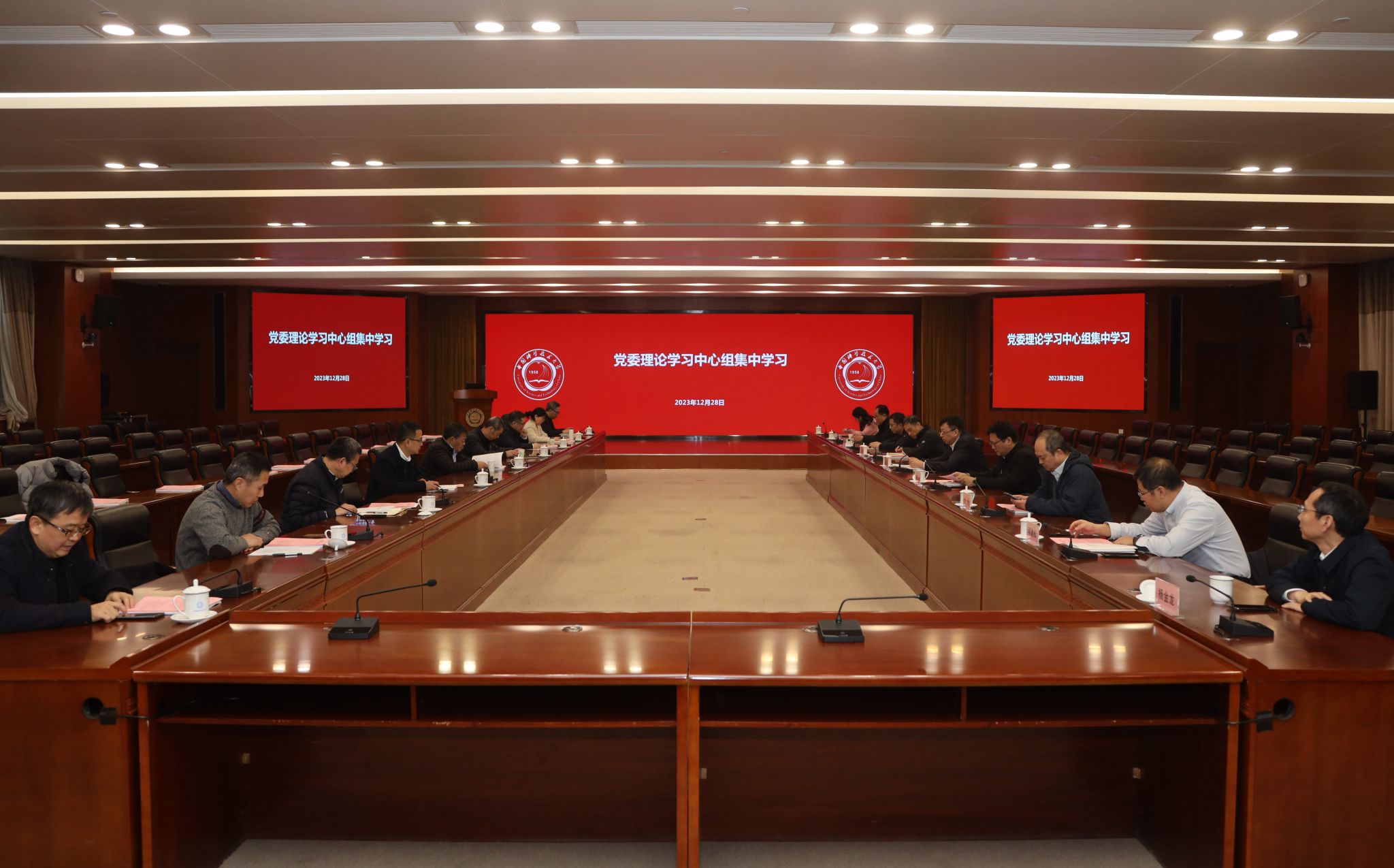12月28日下午,校党委理论学习中心组在东活五楼报告厅召开2023年度第二十四次集中学习会。校党委书记舒歌群主持会议,在校校领导,党委委员、纪委委员,机关党群部门主要负责人参加会议。