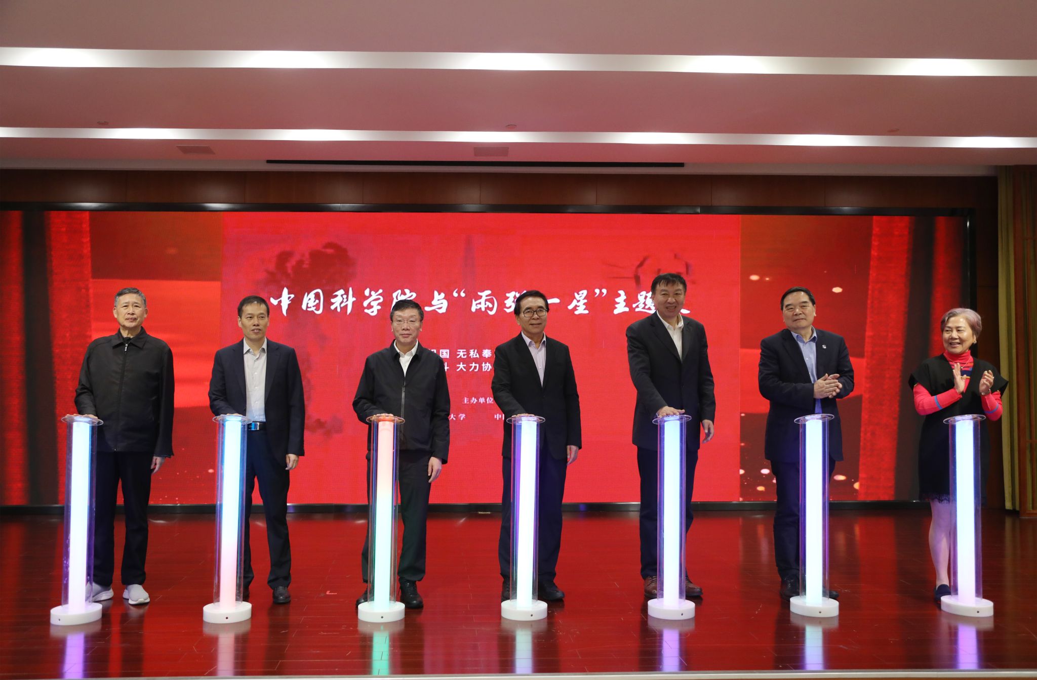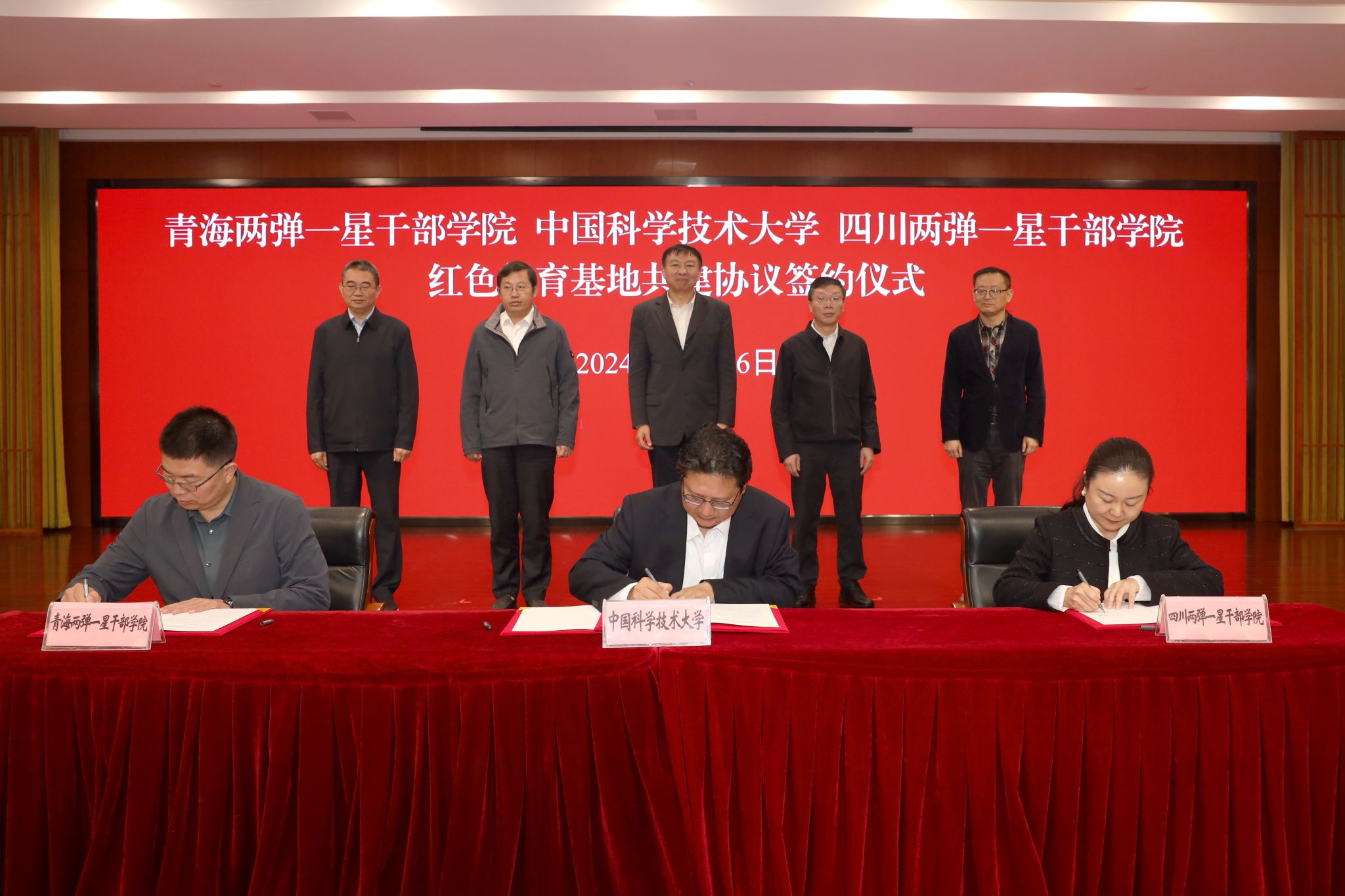 校党委常务副书记蒋一代表学校,与青海、四川两弹一星干部学院就红色教育基地联合共建签署协议。舒歌群、常进、李恒、刘涛为红色教育基地揭牌。白春礼、舒歌群、常进、包信和、严慧英、罗喜胜、王定放共同为中国科学院与“两弹一星”纪念展揭幕。