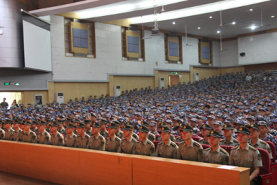 蒋一副书记在讲话中回顾了承训部队与我校多年的合作交流与深厚友谊,对军训教官和2017级全体本科生参训学员表示热烈欢迎。他充分肯定了军训对于大学生综合素质培养的重要意义,重温了习总书记考察中国科大重要讲话精神和人民解放军建军90周年重要讲话精神,勉励同学们肩负时代责任,高扬理想风帆,做有理想、有追求的大学生,做有担当、有作为的大学生,做有品质、有修养的大学生。要以人民解放军为榜样,用顽强拼搏的精神和不屈不挠的意志参加军训,展示科大人良好的精神风貌。他对军训工作提出几点要求:一是要周密计划、精心组织指挥,保障军训顺利开展;二是要坚守岗位,协助军事干部,掌握好学生情况,及时解决学生军训中的思想和实际问题;三是实行军事化管理,要加强组织纪律性,严格请示报告和请销假制度,做到令行禁止,确保各项工作的落实;四是要预防各类事故发生,特别要注意饮食卫生和交通安全。