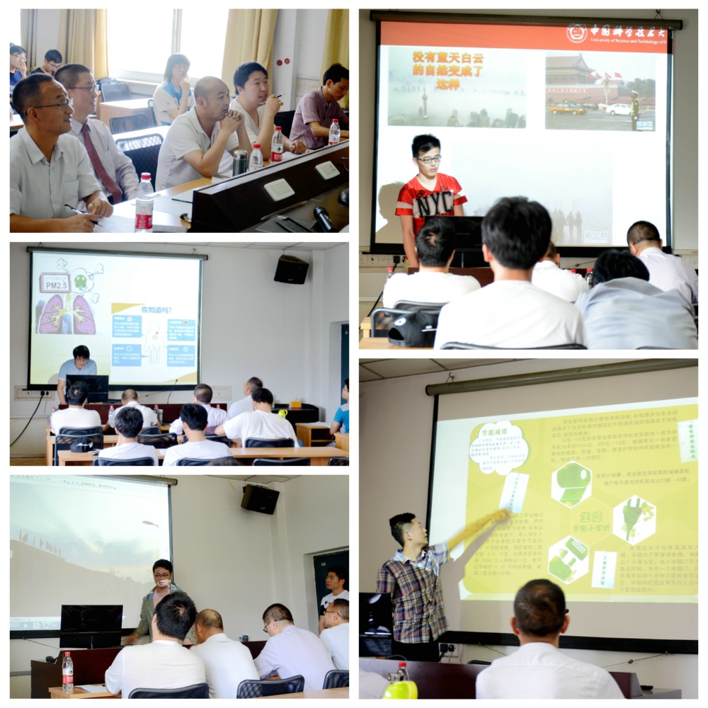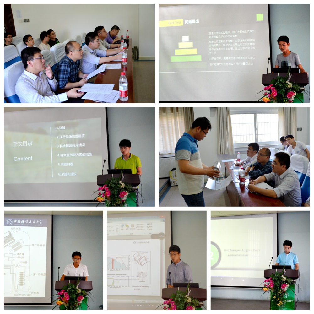 5月13日下午,中国科大第三届“节能减排”创新大赛答辩评审会在西区力学一楼举行。大赛分成“科技及社会调查类”和“科普及艺术类”两组进行。校团委、科技传播与科技政策系、工程科学学院热科学和能源工程系的10位老师组成答辩评委。