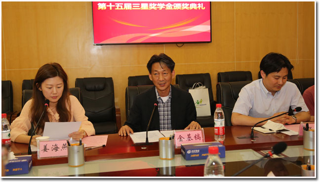 学生工作部(处)副部(处)长李峰宣读了学校关于三星奖学金的授予决定。本次我校共有13名同学获奖,其中本科生10人,每人奖学金5000元人民币;硕士生2人,每人奖学金 7000元人民币;博士生1人,奖学金10000元人民币。