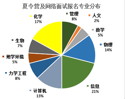 优秀大学生夏令营及网络面试为有志于继续深造的优秀学子提供了解我校的窗口及展示个人风采的平台,是保障我校研究生生源质量的重要举措。截至6月30日,我校共收到9950人报名,比去年增加2888人,其中“985、211”高校生源7358人,比去年增加1589人。在众多夏令营中,科学岛夏令营报名人数超过2000人,另外,物理与化学夏令营、信息科技夏令营报名人数均超过1500人。生源覆盖我校夏令营的所有专业。优秀大学生夏令营及网络面试报名学生的“质”与“量”较去年均有明显提升。