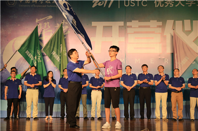 随后,许武书记、包信和校长和各学院领导上台授旗。 在《永恒的东风》雄壮激昂的旋律和全体营员热烈的掌声中,2017优秀大学生夏令营开营仪式顺利划上了圆满的句号。
