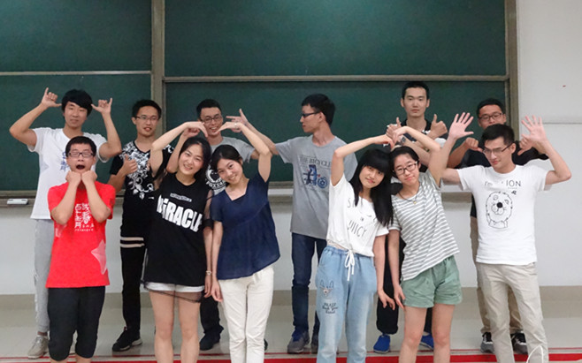 营员们观看了由数学院同学自编自演的宣传视频,对科大、数学院生活有了初步体验。接着,为了尽快让同学们彼此熟悉,志愿者带领营员们玩起了“名字滚雪球”的游戏。主持人随机抽选营员介绍全队信息,对此过程中各队伍的流畅度进行评比,最终评选出第一名和最后一名。第一名的奖励是卖萌十连拍,最后一名的惩罚是“14人11只脚”。