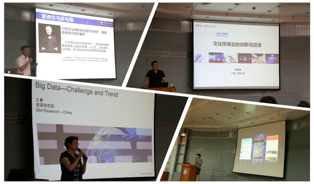 下午的活动以设计创新课程指导委员会聘任仪式作为开场,李卫平教授分别为徐树公、陈衢清、顾嘉唯、钟锟、崔海龙颁发了课程指导委员会委员聘书。随后是特邀嘉宾环节,顾嘉唯的《万物智能的本质——人工智能与人机交互》深度揭示了人工智能的未来发展方向;王青的《大数据——挑战和趋势》从技术角度切入,全方位解读了大数据未来发展遇到的各种挑战和大数据发展的趋势所在;陈衢清从自身的转型经历出发,介绍了创新、投资对于项目开发的重要意义,并通过具体案例对中国文化传媒业创新机遇进行了展望;钟锟的《“互联网+”时代下教育产品创新机会的探索》用振聋发聩的声音指出互联网时代下教育行业的落后与无作为,点明了教育面临的关键难题在于大范围和平等性,与个性化和有效性的矛盾,指出了“互联网+”趋势下教育产品创新的重要意义。