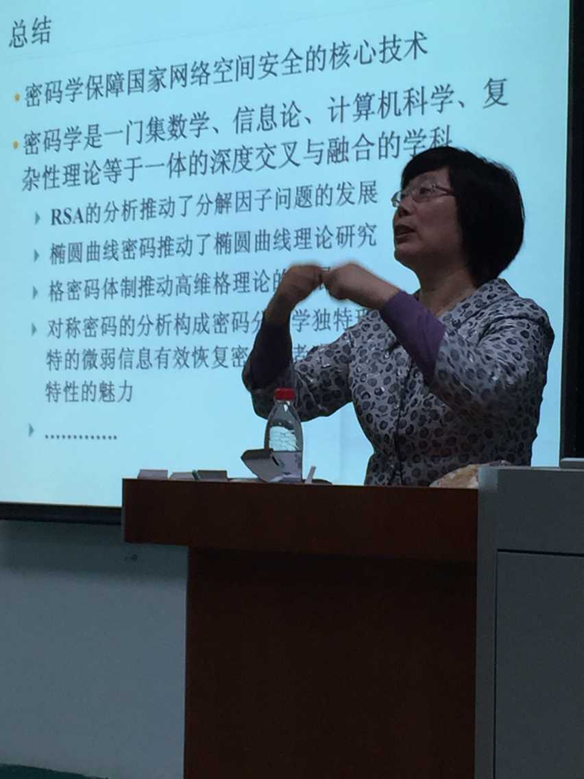 5月11日,应我校信息学院电子工程与信息科学系执行主任俞能海教授的邀请,著名密码学家、国家杰出青年基金获得者王小云教授访问我校,与我校信息安全领域的科研人员进行学术交流,并为我校160多名师生带来了一场题为《现代密码学的发展》的研究生高水平学术前沿讲座。