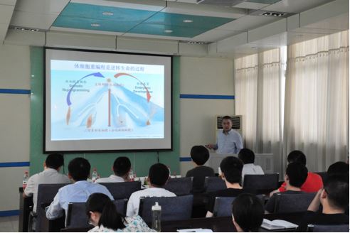 报告会上,薛天代表学院致欢迎词。随后,李劲松研究员做了题为《细胞重编程与胚胎发育》的精彩报告,并与学院师生亲切交流。