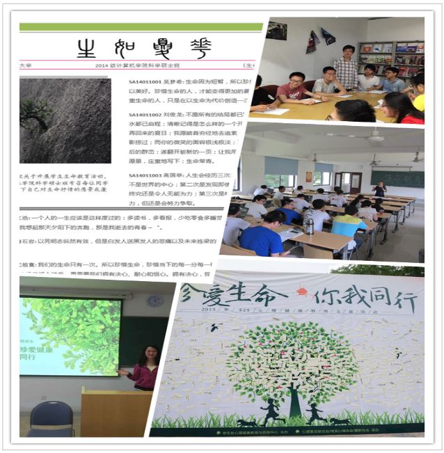 为了进一步发挥学生朋辈之间的互助精神,学校倡议院系以班级为单位,心理委员具体牵头,联合班级干部,征集创意,积极开展生命教育相关活动。三周来,各班级纷纷以主题班会、读书会、沙龙、诗朗诵、宣传小报、电影欣赏等形式举办活动,主题鲜明,方式各异,在学生中引起了一场关于“关爱健康,珍爱生命”的大讨论,反响强烈。很多同学表示,通过参与此次活动对生命有了更深的理解和感悟,学会了尊重生命,感受生命的喜悦,体验生命的意义,树立了正确的生命观。截止5月26日,已有63个班级围绕生命教育主题开展了活动,并递交了详实的文字总结和图片材料,目前仍有班级在积极筹划组织或进行之中。
