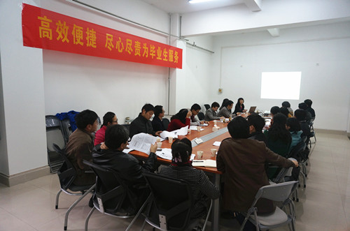 魏英在与院系的交流中,通过数据与图表,从宏观就业形势、我校与兄弟院校的就业情况对比、我校各学院的就业情况对比等角度,分析了当前的就业形势,使与会老师对我校整体就业情况有了较为直观感受和客观了解。同时,她对我校就业工作中存在的一些共性问题、新出现的问题进行重点强调,对各院系的个性问题特别提请大家注意。最后提出了下一阶段的就业工作思路,布置了本学期具体工作,提出了“保就业、控流向、调结构”的工作目标。与会老师们也就本单位就业工作遇到的问题及难点进行了热烈讨论。