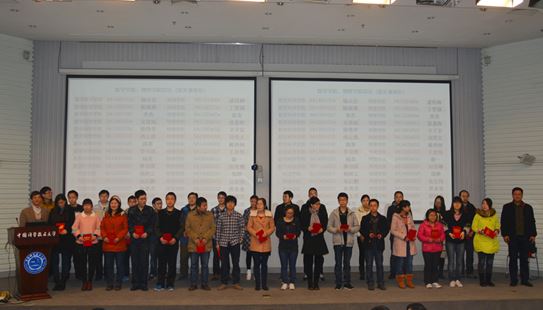 李蓓宣读了《关于授予钱爽等92名同学2014秋季学期“优秀助教”荣誉称号的决定》(教字[2015] 03号文件)。陈初升副校长和蒋一副书记等为获得“优秀助教”荣誉称号的同学颁奖。