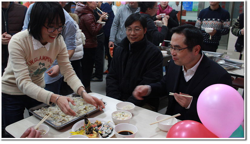 当天下午,为迎接传统冬至佳节,进一步加强代培生同学间的沟通与交流,学工部(处)、研究生院、饮食服务集团、校团委等部门领导和代培生同学代表欢聚在西区教工食堂,共同参加了“冬至美食会”活动。在精彩的抢食材游戏之后,老师们和代培生同学们一边烹制和品尝各式美食,一边交流代培生的学习与生活情况。老师们希望代培生同学在科大的这一年可以愉快地学习和生活。代培生同学也表示,虽然只在科大学习生活一年,但是他们会永远记得这段经历,科大给予他们的一切都将成为最美好的回忆。