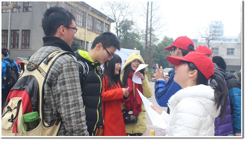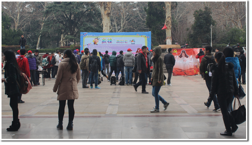 3月5日,天空中飘着雨夹雪,但是校园的东活广场上却是人头攒动,不少同学还撑着雨伞在熙熙攘攘的人群中穿梭,他们正兴致勃勃地参加由校团委和校芳草社青年志愿者协会共同举办的关于雷锋主题的大型“蜜锋”游园会。