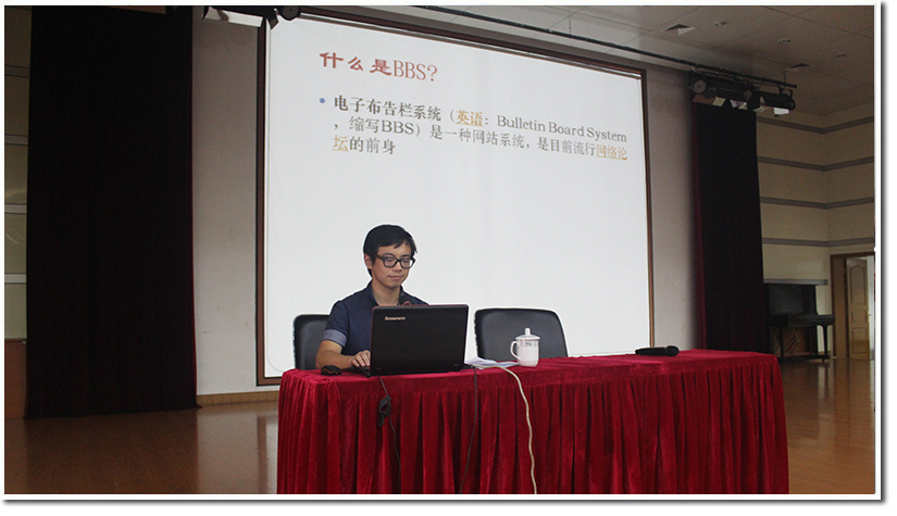 支教报告结束后,我校BBS站长张群继续为2014级新生介绍我校瀚海星云BBS的整体情况及参与方式等相关信息。