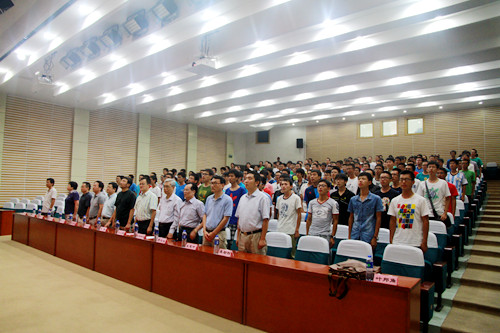 第三届“862校友奖”优秀新生奖获得者李雅博同学作为老生代表发言,与新同学分享了学习经验和生活体会,建议2014级新同学要冷静对待成绩,把知识学扎实,切勿好高骛远,要努力拓宽自己的知识面、眼界和交际圈。2014级物理一班史云舒同学作为新生代表发言,表达了要坚定信心、坚持努力的信念。