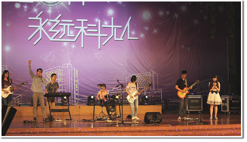 晚上七点整,晚会在由科大本土乐团演奏的《在路上》中准时拉开帷幕。这首由科大学子原创的摇滚歌曲,激起了当晚的第一个高潮。