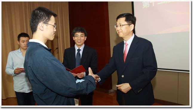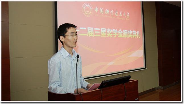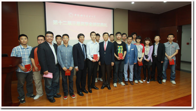 会上宣读了学校关于2013年度三星奖学金的授予决定,本次我校共有13名同学获奖,其中本科生10人,每人奖学金5000元人民币;硕士生2人,每人奖学金 7000元人民币;博士生1人,奖学金10000元人民币。