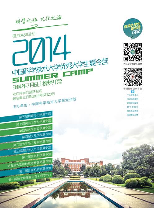 今年我校夏令营将继续“扩营”,在去年的基础上新增举办三个夏令营,夏令营将达到十个,分别是:第五届物理化学夏令营,第七届黄山生命科学夏令营,,第四届大学生数学夏令营,第四届交叉学科夏令营,第五届大别山地质考察暑期夏令营,第三届高低空大气探测夏令营,第二届力学与工程科学夏令营,第一届技术物理夏令营(科学岛),第一届信息科技夏令营,第一届计算机科学夏令营。这些夏令营覆盖我校所有的理工科专业,其中技术物理夏令营(科学岛)、信息科技夏令营、计算机科学夏令营是今年新增的三个营。本年度夏令营计划招收A类营员1000人,B类营员500人。