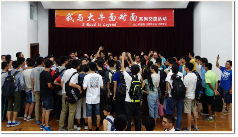 现场虽然有很多站在过道、坐在台前地上的同学,但秩序井然,交流效果颇好。活动结束后,感兴趣的同学们继续围着“大牛”们讨教交流。此次参与交流的嘉宾均是斯坦福和麻省理工各学科的领军人物,他们与我校青年学子的面对面轻松交流拉近了同学们与国外一流高校的距离,在增进相互了解的同时,为进一步推动国际交流合作奠定了一定基础。