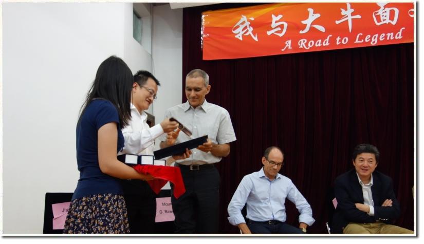 最后由张捷教授、杜江峰教授和俞书宏教授代表我校师生向16位远道而来的嘉宾赠送校园纪念品——校园风光丝绸折扇。嘉宾们在签名簿上签名,一起合影留念。