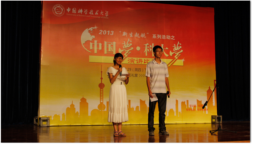 8月29日,2013新生启航”系列活动之——“中国梦,科大梦”演讲比赛在东区大礼堂进行了最后的决赛,经过初赛、复赛脱颖而出的十二名选手在2013级本科生新生面前展现了自己的非凡口才。
