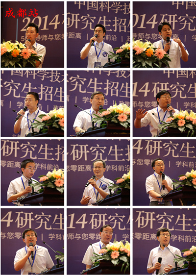 据统计,来自我校数理化天地生等学科的100余位教授参与了周六、周日的研招教授宣讲会。两日来,武汉、成都11所“211”、“985”大学及其他数十所高校2000余名学子前来现场咨询我校研招政策。宣讲会后,各学院、国家(重点)实验室对部分优秀学生进行了现场面试。另外,作为中国科大2014年研招宣讲品牌活动之一,继武汉、成都站之后,研招教授宣讲会将于9月14日同时登陆南京、西安两地。