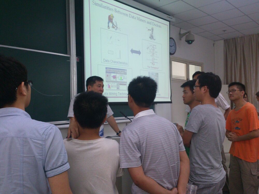 7月22-26日,国家龙星计划课程“数据挖掘”在我校举办,主讲教师是美国罗格斯—新泽西州立大学熊辉教授。选课同学不仅有来自我校多个学院的同学,更吸引了来自美国名校斯坦福大学、卡耐基梅隆大学、约翰霍普金斯大学,以及台湾大学、清华大学、复旦大学、浙江大学、南京大学、西安交大、哈工大等众多知名高校的老师和同学共150多人。