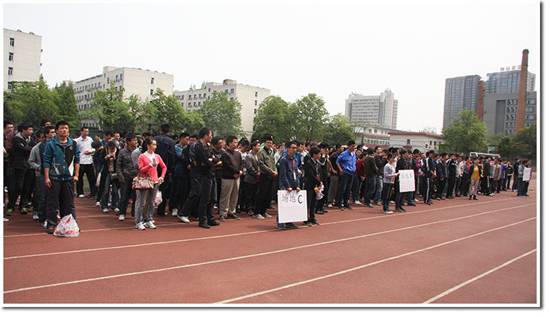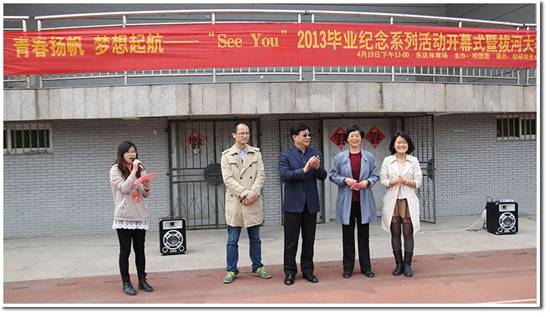 4月19日下午,“See You2013毕业纪念系列活动开幕式暨拔河大赛在我校东区体育场精彩上演。2013届毕业生和2012级代培研究生29支队伍共计420余人参加了本次盛会。本次活动得到了学校各级领导的大力支持,校党委书记许武、校党委副书记鹿明、中国科大校友新创基金会刘志峰校友以及校团委副书记杨晓果出席本次活动。