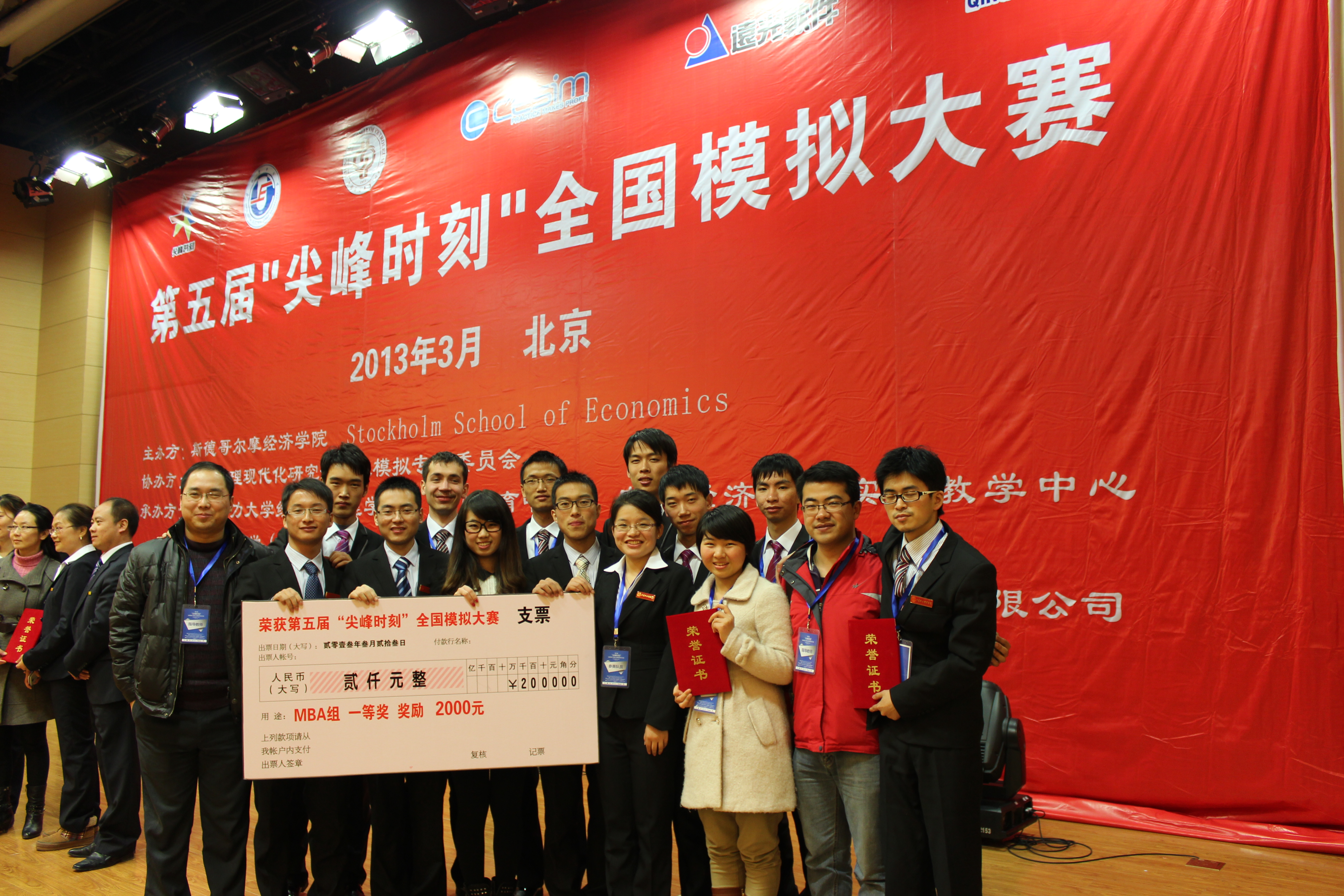 本届大赛得到全国70多所高等院校的积极响应,参赛队伍400余支,汇集了清华大学、北京大学、中国科学技术大学、上海交通大学、中国人民大学、北京师范大学、中山大学等众多国内优秀高校。该赛事决赛由商业演示和模拟比赛两部分组成,商业演示的评委团由高校学者和企业专家组成。自2012年10月开始,参加决赛的三支队伍在徐晓燕教授的指导下,经过近半年的角逐,历经校内选拔(校内近40支队伍参赛)、全国预赛,一路过关斩将,入围全国决赛,最终在第五届国际商业模拟竞赛“PEAK TIME”大赛中国区决赛中获得佳绩。