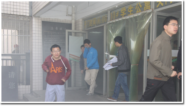 4月13日和14日,全校性的学生公寓楼安全疏散演习活动依次在东、西、南、北4个校区举行,27幢公寓楼的学生参加了安全疏散演习活动。