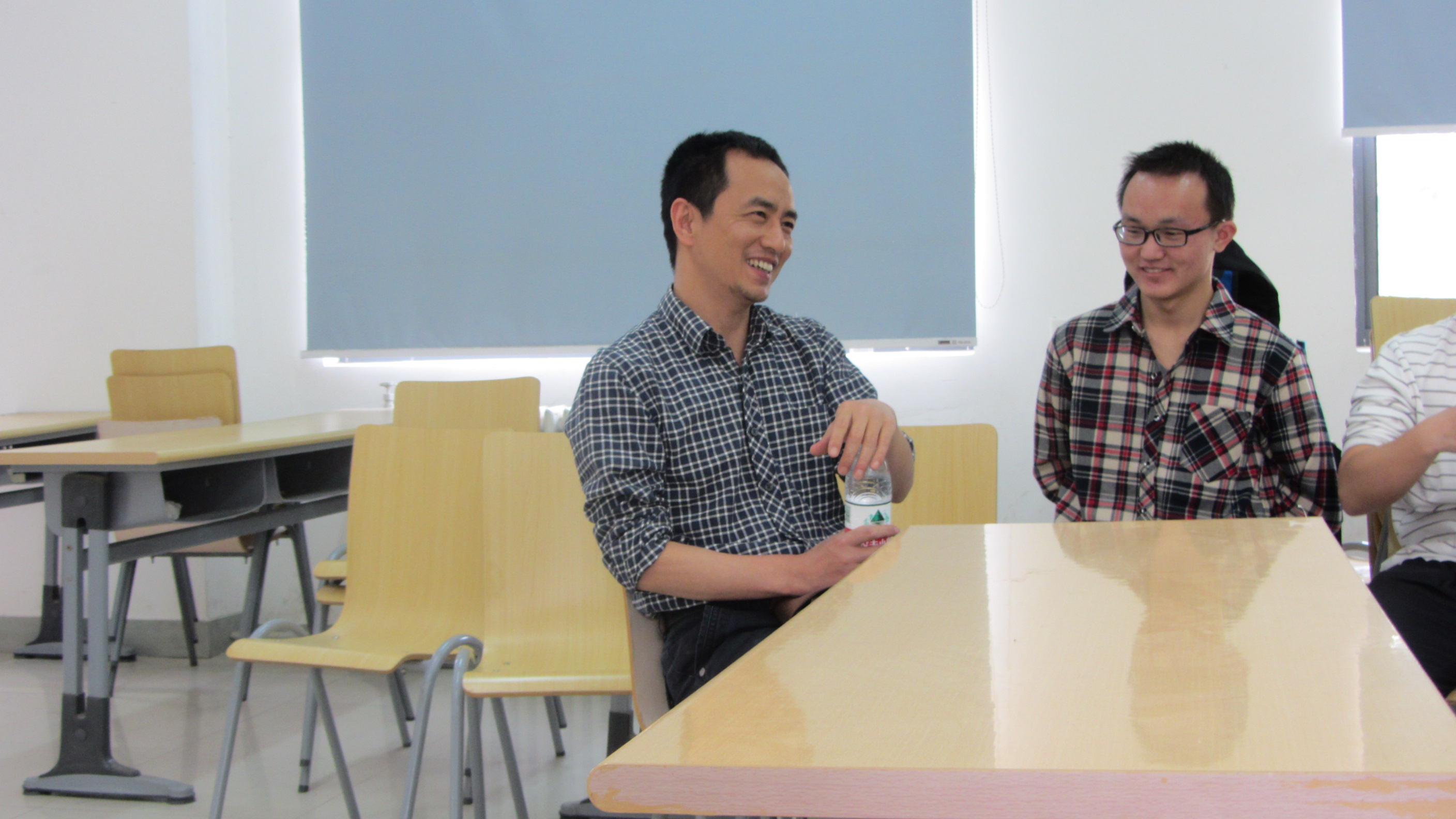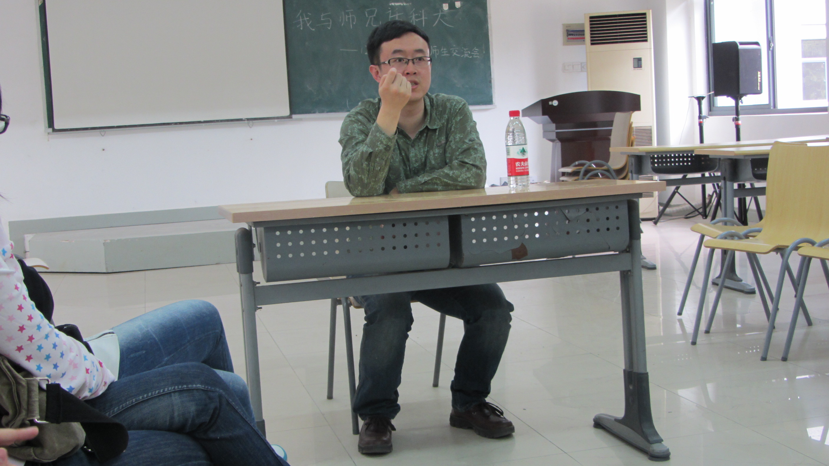 此次邀请到的两位毕业于科大的老师分别是陈卿老师和徐春凯老师。徐春凯老师以对大学学习的看法为开场,仔细剖析了大学与中学学习的不同,并给出了学习方法上的建议。在同学的提问下,徐老师简单介绍了自己的研究方向。随后他又和同学们讨论了物理学的前沿问题,同学们听得津津有味。在大家的一致要求下,徐老师开始追忆他当年就读科大的同学,并对比了科大的过去和现在,给同学们带来很大启发。