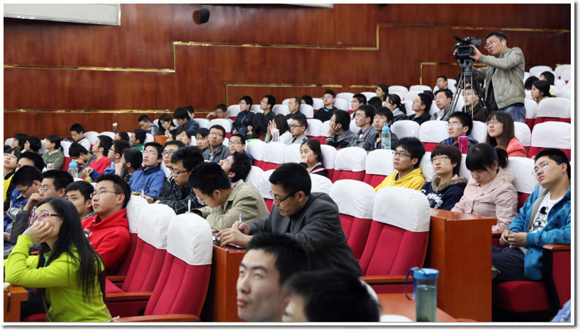 随后,主持人对郑院士进行了现场访谈。从郑院士如何走上地球化学的研究道路开始,到如何培养学生、如何看待自己取得的成绩等,郑院士对每一个问题都详细回答,深深地吸引了同学们。谈到培养学生时,郑院士认为导师起到非常关键的作用,导师要针对学生的情况指导学生,在各方面都要严格要求学生,培养学生养成好的习惯,一步步取得成功。在问及什么是最大的成功的时候,郑院士回答说:“当我培养的学生超过我时,我会认为这是我最大的成功。我非常期待这一天的到来。”他的回答赢得了阵阵掌声,现场气氛十分热烈。