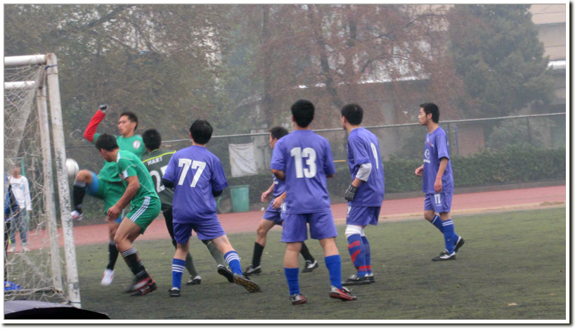 在另一块场地上进行的是“首研杯”的角逐。物理学院在场面上稍占优势,并率先由右边锋突破推射远角得手。然而地空学院队并未就此放弃,他们顽强地扳平比分并将比赛拖入点球大战。点球大战中,两队球员因紧张均发挥失常,多个球打偏。直到第6轮罚球,客串守门员的地空学院队长飞身扑出物院队员射出的半高球,直接结束比赛。最终,地空学院队胜出,获得“首研杯”冠军。