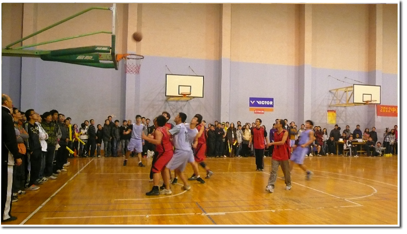 原本7点半开始的比赛在7点时便有许多观众陆续进场。比赛开始前,主持人对双方球队队员的介绍使现场气氛提前达到一个高潮。water和kingstorm的队员大都不是第一次参加科星杯,对篮球的热爱让他们又一次站在科星杯的比赛场上,尤其kingstorm队队长唐诚同学更是带伤上场。最后,上半场以32比31,kingstorm取得微弱优势结束。